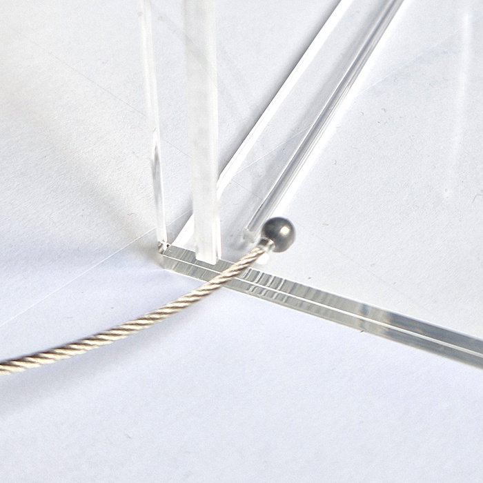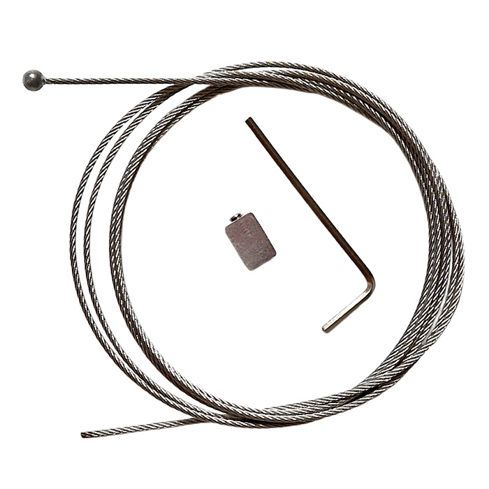 Boor een gaatje van 1,5 mm in de box die je wilt beveiligen en voer de kabel erdoor tot de metalen knop niet verder kan. Vorm vervolgens met de sluitbeugel een lus en vergrendel deze. De lus kan bijvoorbeeld om een tafelpoot worden bevestigd of met een schroef worden vastgezet.