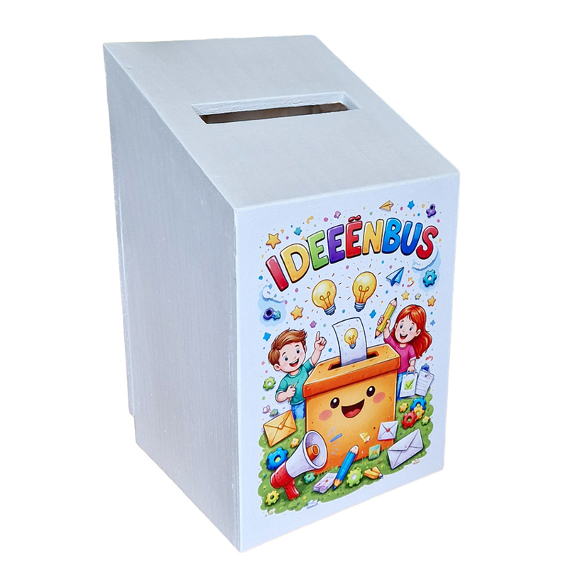 Ideeënbus Luxe BlancoDeze mooie ideeënbus is geschikt voor het inzameling van ideeën, invulkaartjes, visitekaartjes en nog veel meer. De bus is van wit kunststof materiaal gemaakt.